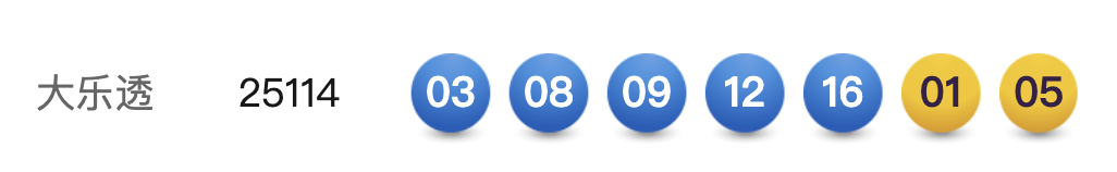 10月8日,超级大乐透第25114期开奖。前区开出号码03、08、09、12、16;后区开出号码01、05。本期全国销售2.86亿元,为国家筹集彩票公益金1.02亿元。
