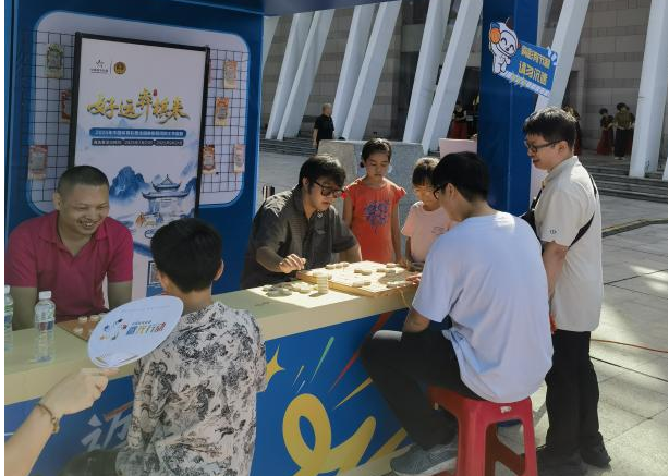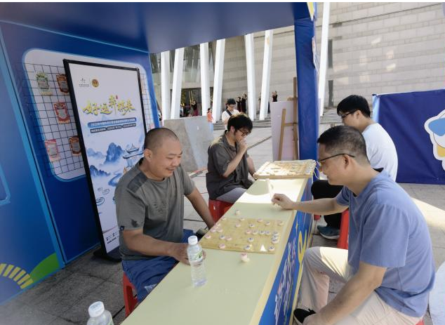 在“棋乐无穷”区,象棋爱好者们围桌而坐,家长与孩子同台切磋、以棋会友。旁观的市民热情高涨,纷纷为选手支招、讨论破解思路,现场气氛热烈。经过一轮又一轮的比拼,大家不仅结识了棋友,也在博弈中收获快乐。