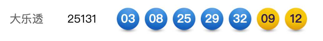 11月17日,超级大乐透第25131期开奖。前区开出号码03、08、25、29、32;后区开出号码09、12。本期全国销售3.12亿元,为国家筹集彩票公益金1.12亿元。