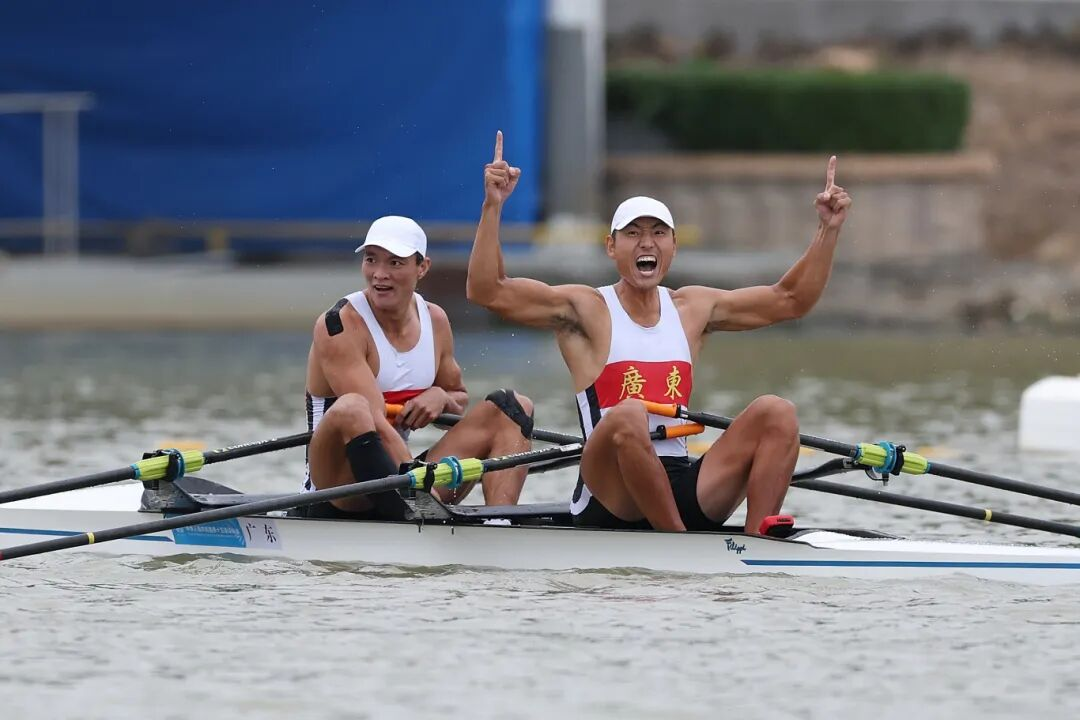 图一:广东队选手倪旭林/聂毅德夺得赛艇男子双人双桨冠军