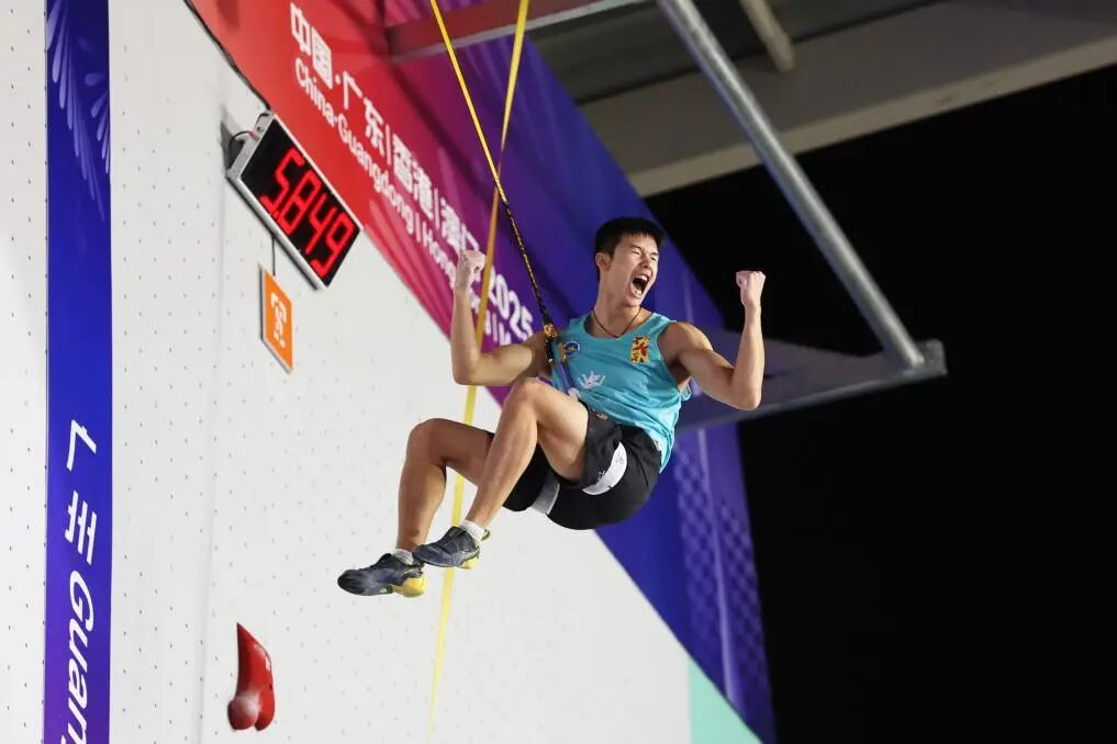 11月19日,香港队选手蔡俊彦在比赛后庆祝夺冠。