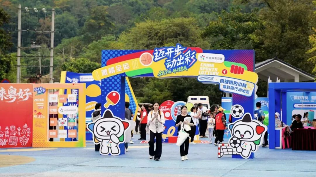 在林家铺子广场,最吸引人眼球的,当属韶关市体育彩票管理中心开展的“迈开步 动出彩”体育公益进社区宣传活动。活动设置了公益金宣传区、趣味打卡活动区、游园游戏区等,吸引众多游客朋友排队参与,现场热闹非凡。