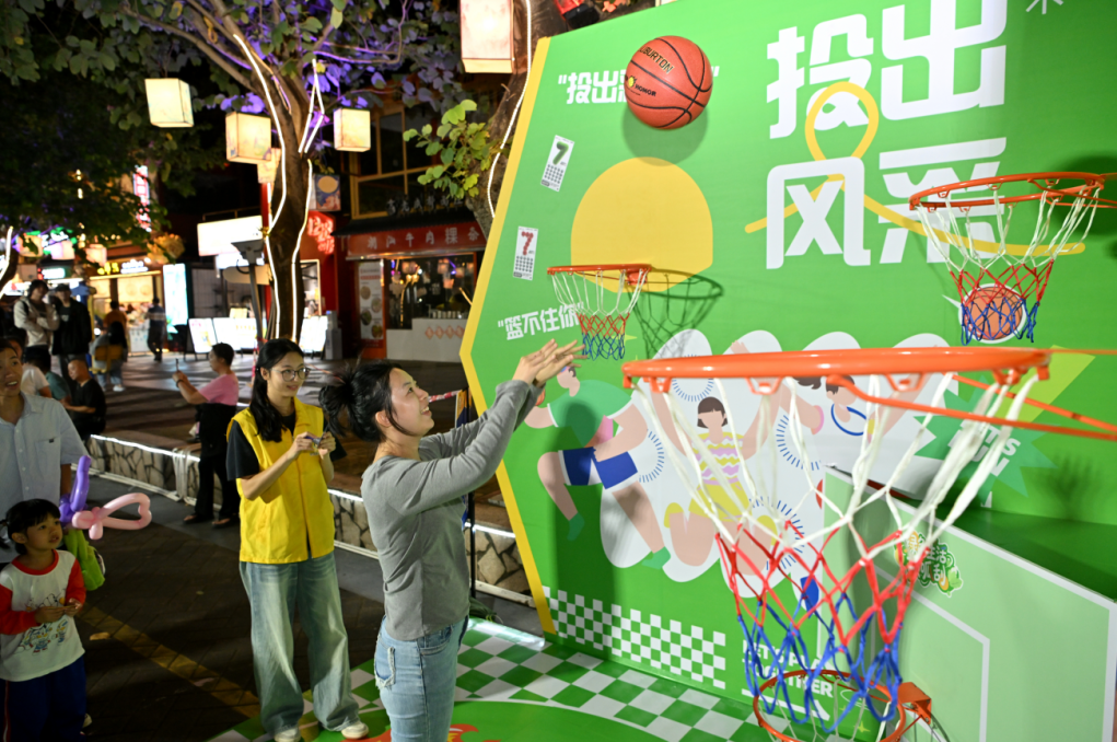 活动现场精心设置了公益及文化展示区、产品体验区、互动游戏区域等区域。在“投出风彩”区内,市民们化身“神投手”,在模拟投篮中感受篮球运动的独特魅力;“脑洞”动出彩(沙包/足球进洞)等区域也都各具特色,市民不仅能在这里锻炼身体,还能通过游戏领取体彩礼品,真正实现了全民参与、全民共享的运动理念。