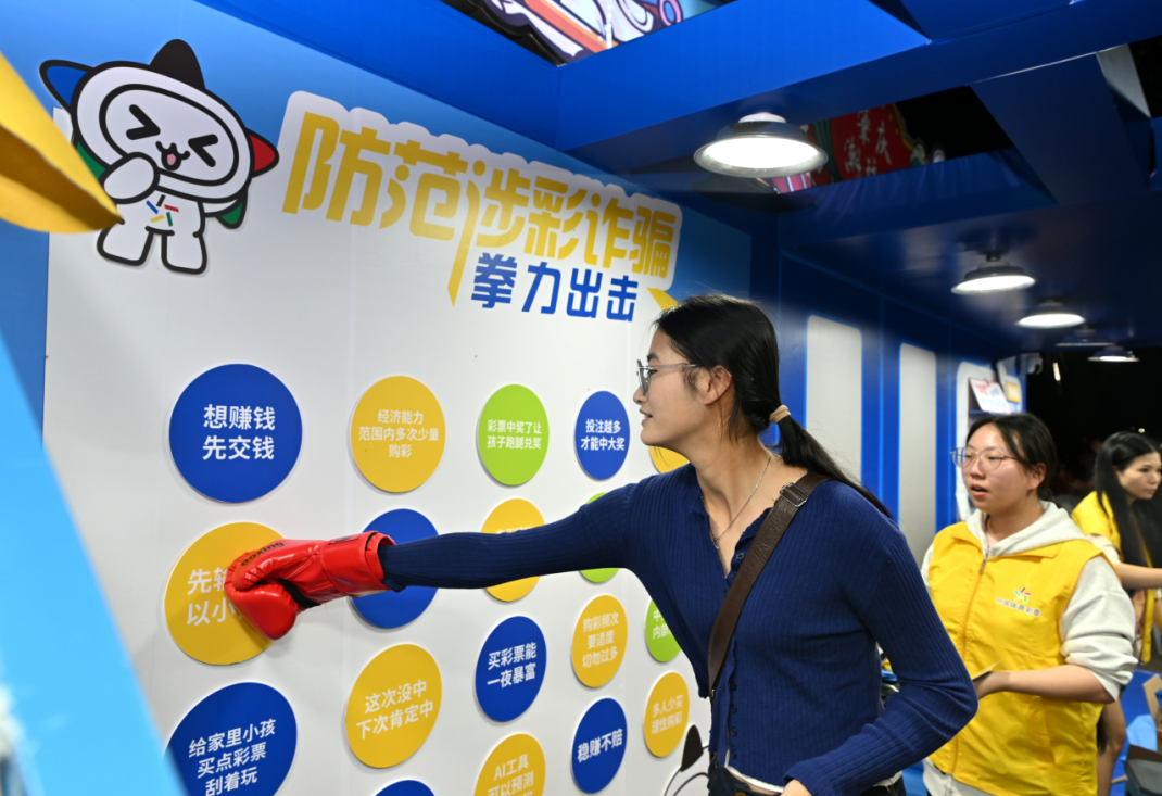 反诈宣传区以创意互动形式,将实用的防诈骗知识融入趣味体验。“拳”释新出彩互动游戏结合拳击运动与反诈口诀,让参与者在出拳击打过程中,轻松记忆防骗要点。