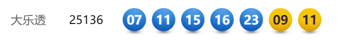 11月29日,超级大乐透第25136期开奖。前区开出号码07、11、15、16、23 ;后区开出号码09、11。本期全国销售3.32亿元,为国家筹集彩票公益金1.19亿元。
