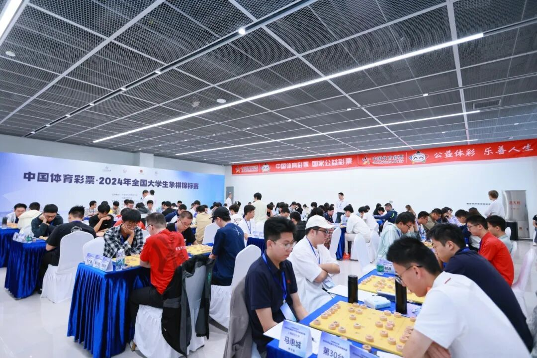 赛场内,“公益体彩 乐善人生”的横幅醒目亮眼,直观传递着体彩公益理念,与学子们专注博弈的身影相映成景,激励着每一位棋手全力以赴,展现最佳风采。
