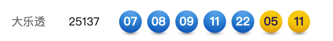 12月1日,超级大乐透第25137期开奖。前区开出号码07、08、09、11、22 ;后区开出号码05、11。本期全国销售3.06亿元,为国家筹集彩票公益金1.1亿元。其中,广东深圳中得1注基本投注一等奖,出自4402080302体彩实体店。