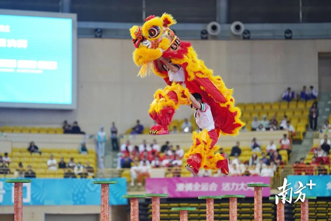 粤港澳联队在南狮自选子项目的精彩表现。图/ 南方+