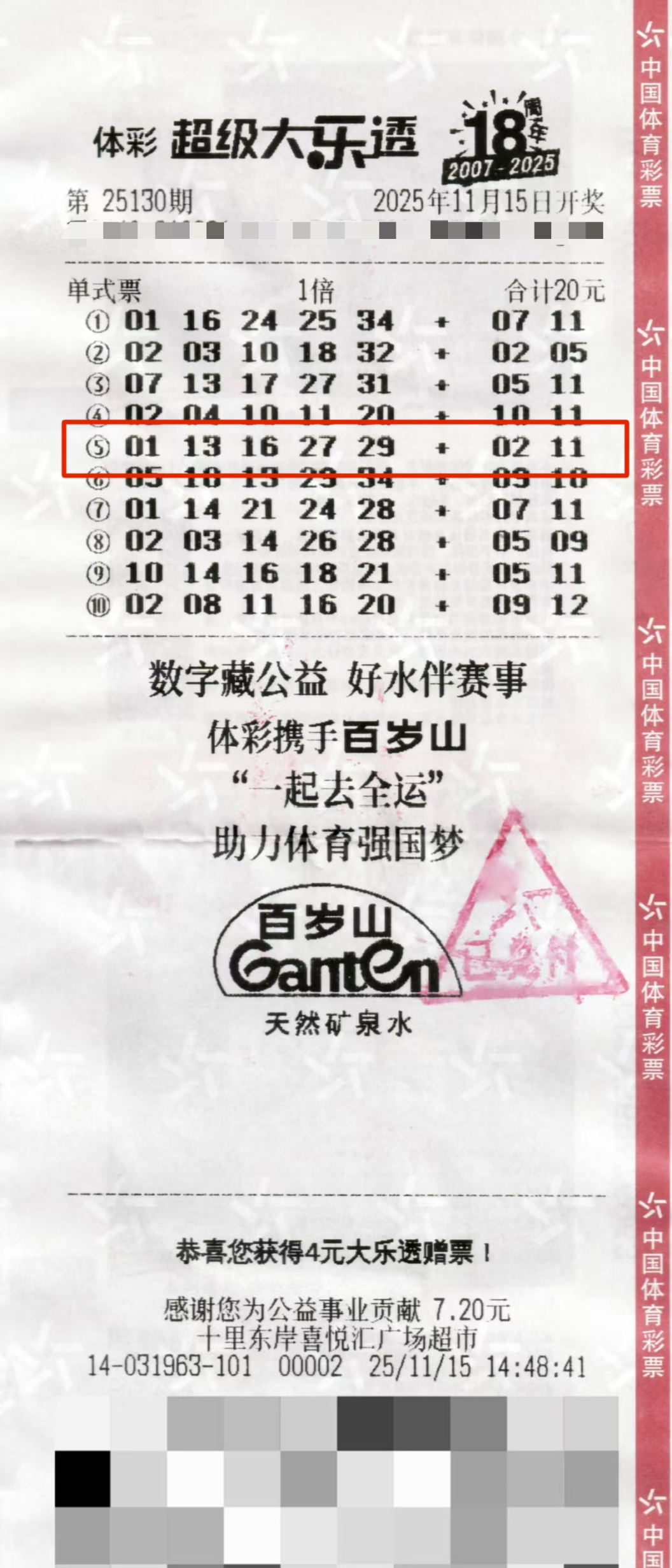 中奖者麦先生(化名)平日里偶尔购买彩票,将之视为生活中的小乐趣。购彩当日,路过这家体彩实体店,进店一试手气。原本他只打算机选五注超级大乐透,但在代销者的介绍中了解到当时体彩超级大乐透正开展“购买10注赠2注”活动,最终选择参与活动,机选了10注,并额外获得了2注赠票。