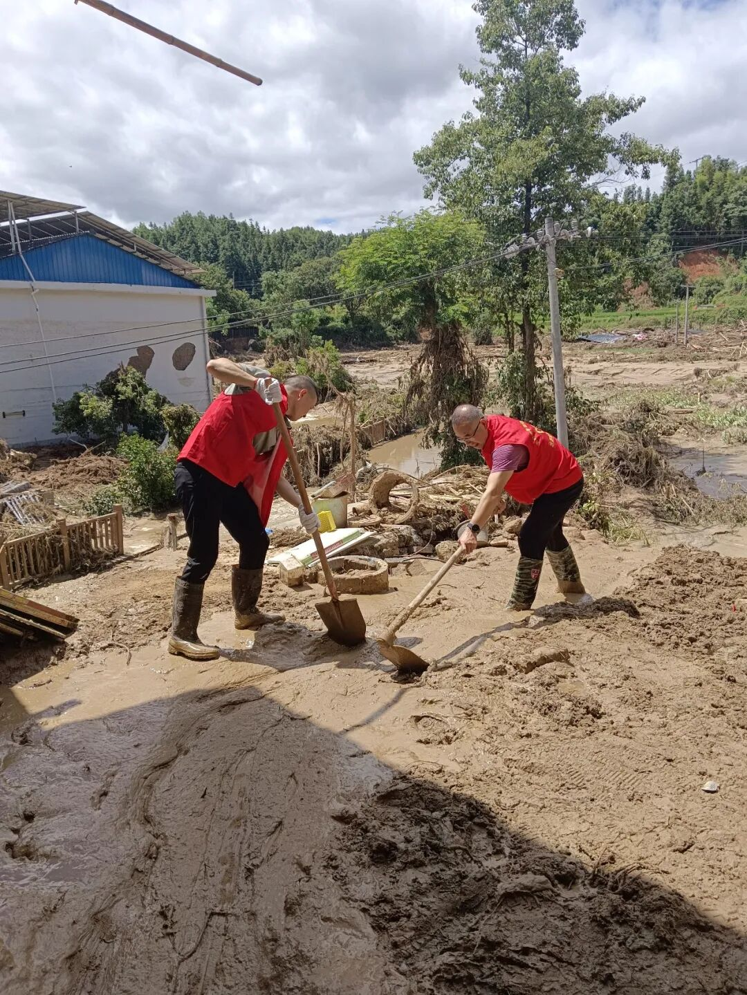 2024年“7·27”洪灾,州门司镇遭受重创。唐华斌毫不犹豫地带着多名党员和热心群众连夜奔赴灾区。他们徒手抢救转移货物,用铲子清理齐踝深的淤泥,帮助受灾群众尽快恢复生活。在此次救灾行动中,他组织支部成员和爱心群众累计为灾区捐款8.5万元,捐赠物资超8万元。在湿热的夏天,大汗淋漓的他们收到大娘硬塞来的水,那一刻,所有的疲惫都烟消云散,心中满是温暖与力量。