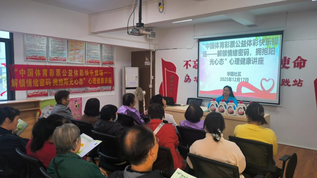 “学会了呼吸调节法,以后遇到烦心事就能自己缓解了!”在华园社区“解锁情绪密码 拥抱阳光心态”心理健康讲座的现场,年过六旬的张阿姨满脸笑意地分享自己的收获。这场由江门体彩助力开展的公益讲座,让30余名社区居民、工作人员在轻松的氛围中,学到了情绪管理的实用妙招。
