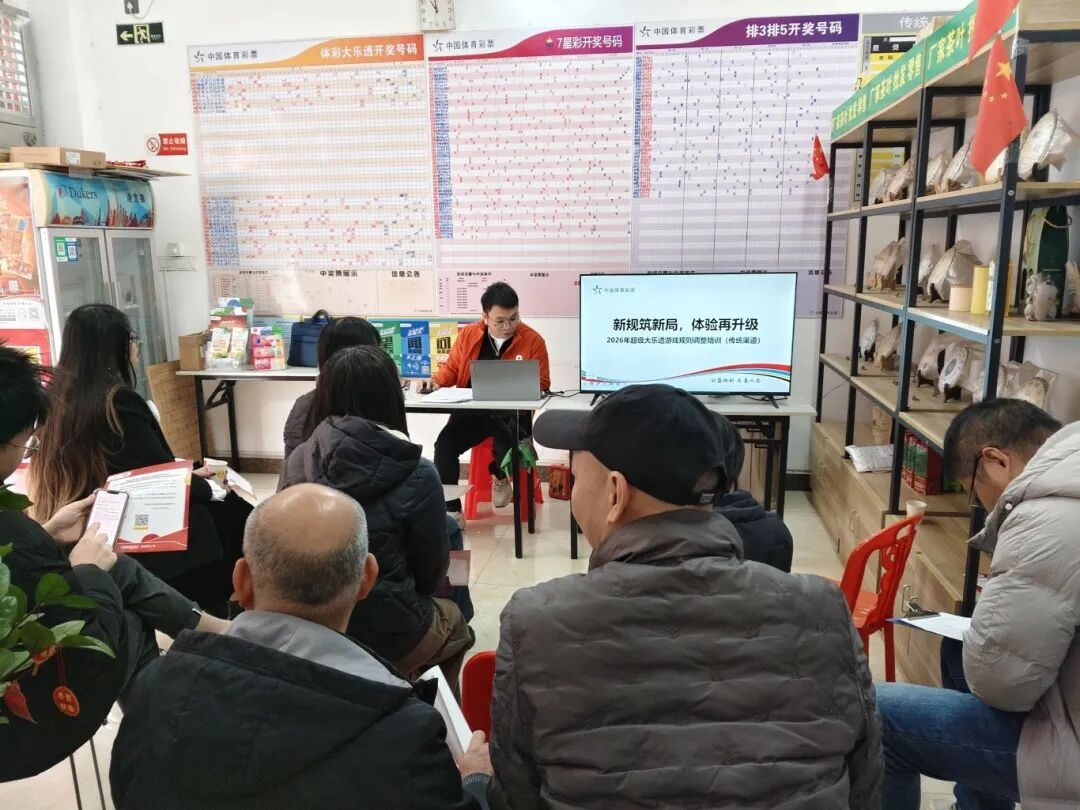 本次培训紧扣2026年1月31日(第26014期)正式生效的超级大乐透新规则核心要点,对新规则进行了全方位、深层次的解读。本次规则变更主要针对游戏奖级、中奖条件及中奖金额,培训讲师详细对比了新老规则的差异,用通俗易懂的语言拆解关键变化点,让参训人员快速了解新规内容。