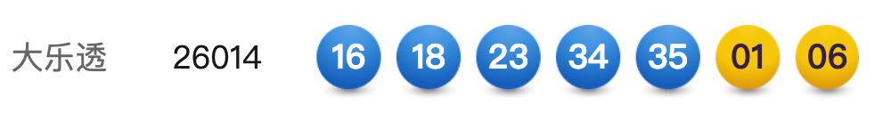 2月2日,超级大乐透第26014期开奖。前区开出号码16、18、23、34、35;后区开出号码01、06。本期全国销售3.18亿元,为国家筹集彩票公益金1.14亿元。