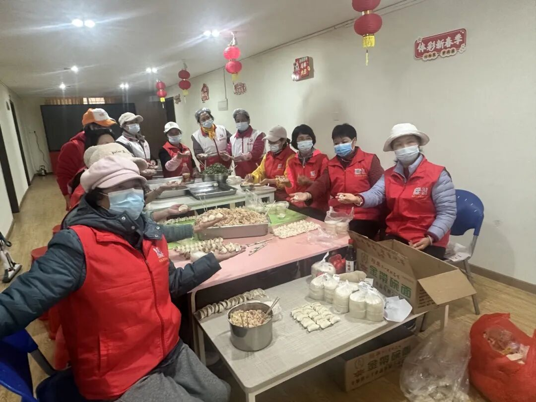 社区二楼的包饺子活动区满是邻里温情,居民们围坐一起揉面、擀皮、包饺子,欢声笑语间,饱满的饺子摆满托盘,浓浓的邻里情与新春味在热气腾腾中愈发醇厚。
