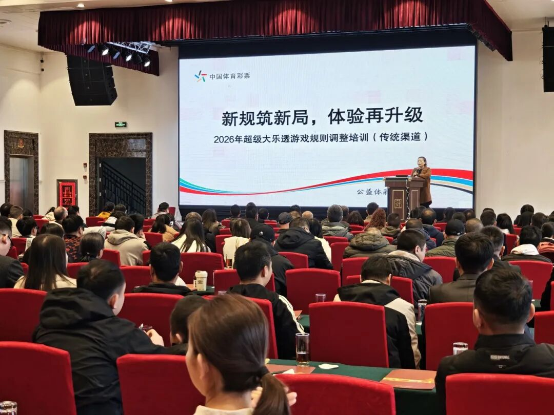 为做好2026年超级大乐透游戏规则调整的落地工作,日前,河源体彩召开全市体育彩票业务培训会。中心工作人员、各县区专管员及全市代销者300余人参会。