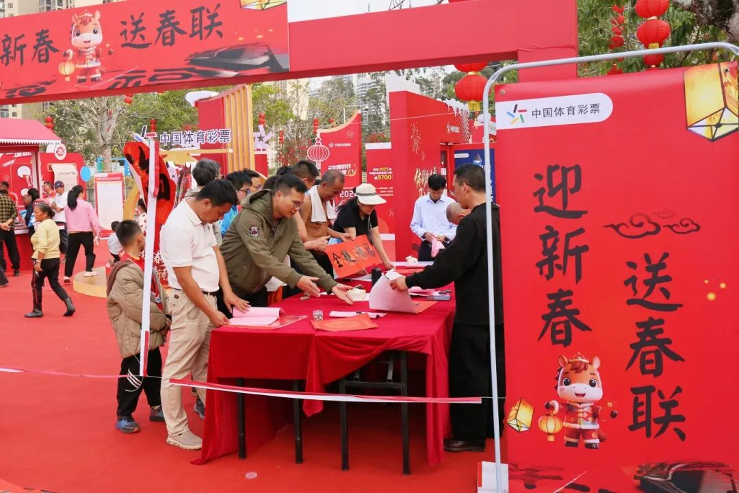 领到春联的市民喜气洋洋,举着刚写好的“福”字连连点赞:“太幸运了,逛个公园还能领到书法家手写的春联,特别感谢湛江体彩这个公益活动!”
