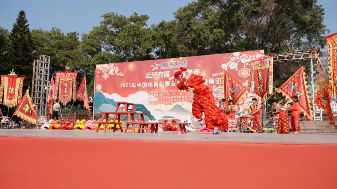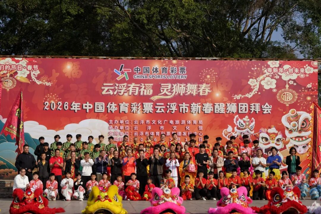 日前,在云浮市人民广场,随着一阵激昂的锣鼓声划破天际,“云浮有福 灵狮舞春”2026年中国体育彩票云浮市新春醒狮团拜会拉开帷幕。