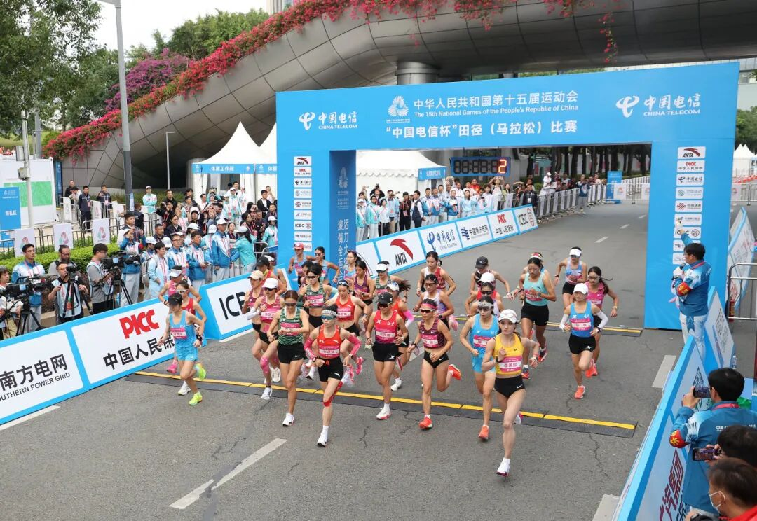 十五运会田径项目女子马拉松比赛举行。赛事跨越深圳、香港,是全运会历史上首个跨境马拉松赛事。图/新华社