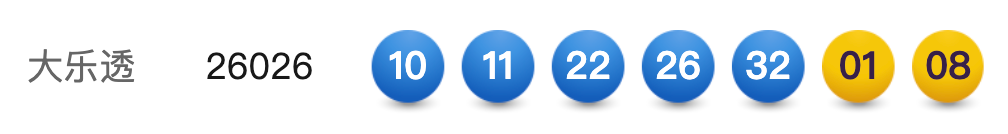 3月14日,超级大乐透第26026期开奖。前区开出号码10、11、22、26、32;后区开出号码01、08。本期全国销售3.30亿元,为国家筹集彩票公益金1.18亿元。