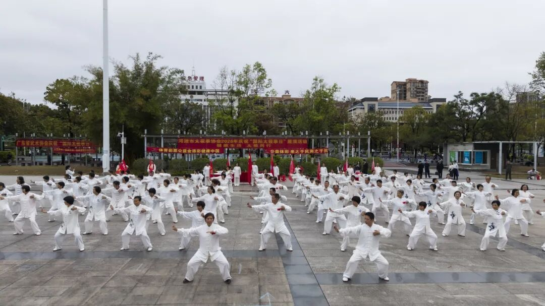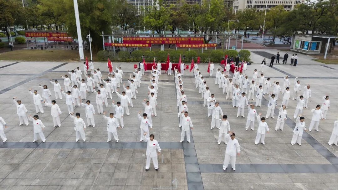日前,由河源市文广旅体局指导,河源市体育彩票管理中心支持的“健康生活 太极同行”河源市太极拳协会2026年庆祝“国际太极拳日”展演活动,在河源市区全民健身广场举行。来自全市14个站点的200余名太极拳爱好者齐聚一堂,以展演传承太极文化,以运动践行健康理念,共庆这一太极爱好者的专属节日。