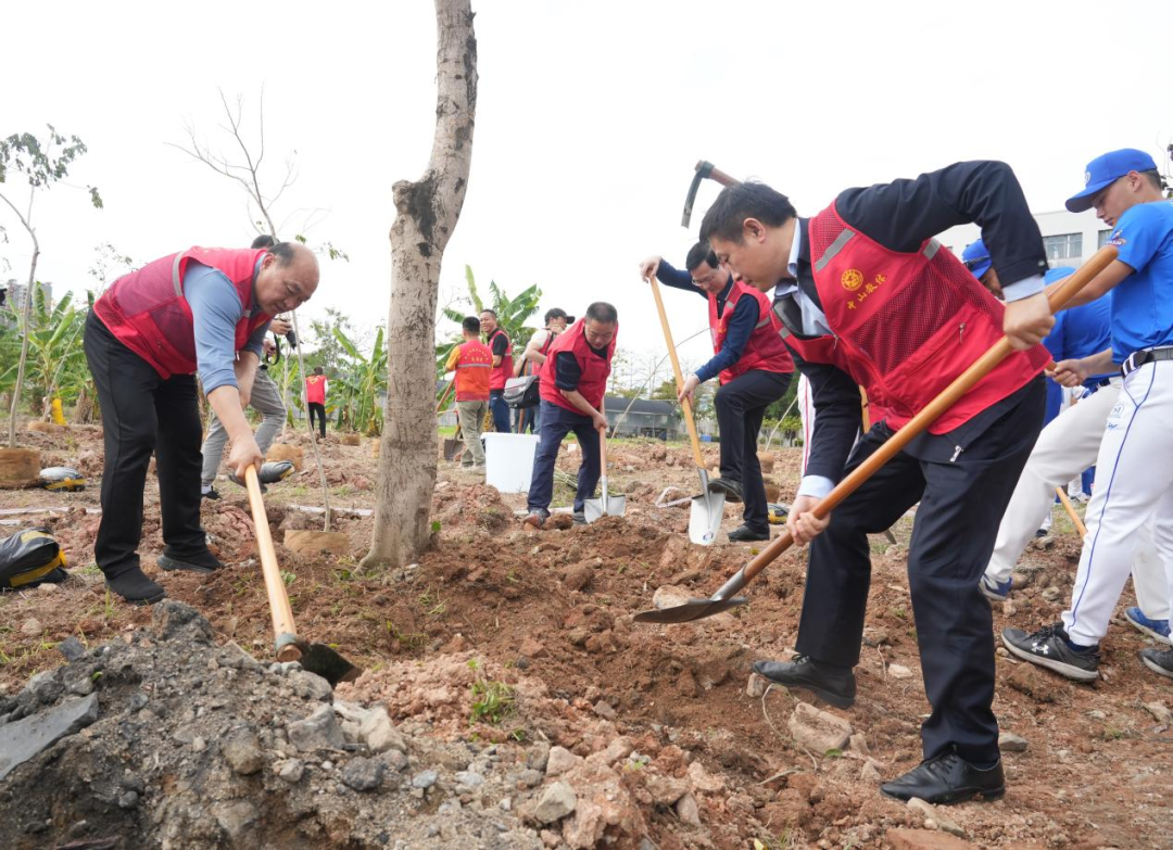 植树节奔赴职校,携手省棒球队共植零碳全运林,种下凤凰木、黄花梨200余株,以绿色行动为绿美中山生态建设添彩,用青春力量为全运会助力。
