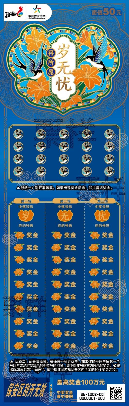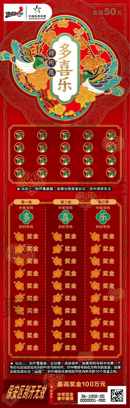 根据《财政部关于“为中国力量加油 雪舞龙腾”等14款即开型体育彩票游戏的审批意见》(财综〔2025〕36号)的要求,我中心将于2025年11月上市“得所愿”3款即开型体育彩票游戏,具体如下:10元“得所愿”、20元“得所愿”、50元“得所愿”。