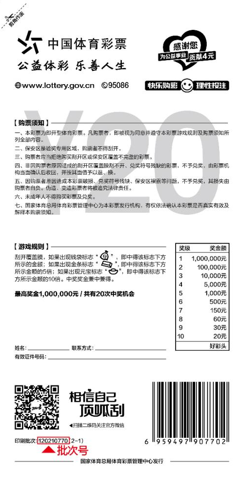 请购买上述印刷批次即开型体育彩票游戏的购彩者在停止兑奖时间前及时兑奖。不属于上述印刷批次的同名即开型体育彩票游戏可继续销售、兑奖。