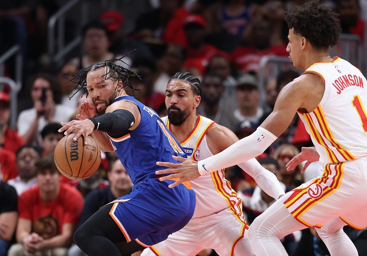 老鹰手握大比分2-1领先优势。第三场,杰伦·约翰逊24分10篮板8助攻,麦科勒姆23分5篮板,库明加21分4篮板。亚历山大·沃克14分3篮板。前三战老将麦科勒姆场均27分3.7篮板,球队获胜的两场比赛关键时刻毫不手软。杰伦·约翰逊季后赛场均21.3分8.3篮板4.7助攻表现全能,库明加则扮演奇兵的作用,场均16分4篮板。老鹰的隐患在于内线护筐不足,球队需要继续提速转换进攻,利用机动性打反击,避免陷入阵地战消耗。同时限制布伦森串联,切断其与唐斯联系,力争主场取胜,目标一鼓作气拿下赛点