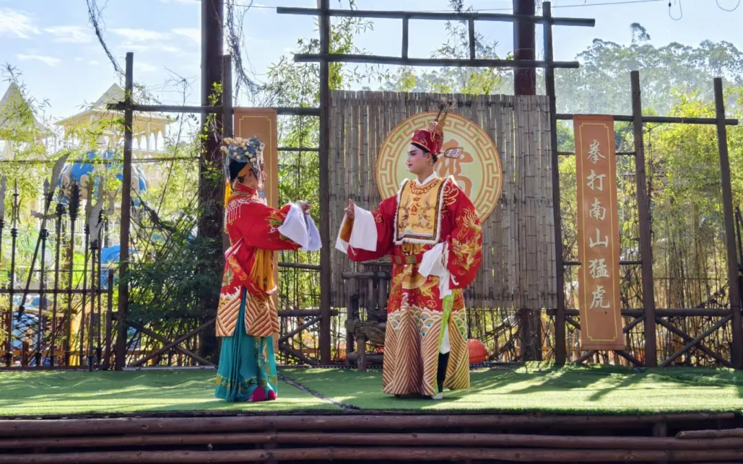 活动当天上午8时30分,望天湖游客中心前广场上人气爆棚,一场“揭”味浓郁的非遗展演——英歌队登场激情舞动,场面喧闹,热闹非凡。