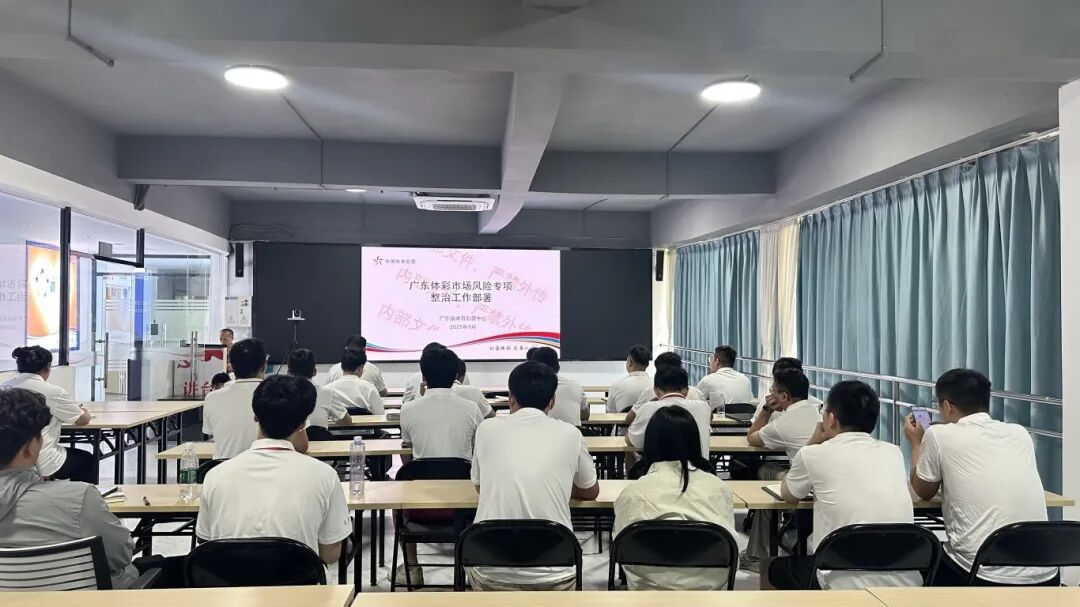近日,佛山体彩组织中心工作人员、全市专管员召开佛山体育彩票市场风险专项整治工作部署会,全面分析当前市场存在的突出风险,制定针对性整治措施,确保体育彩票市场安全有序运行。