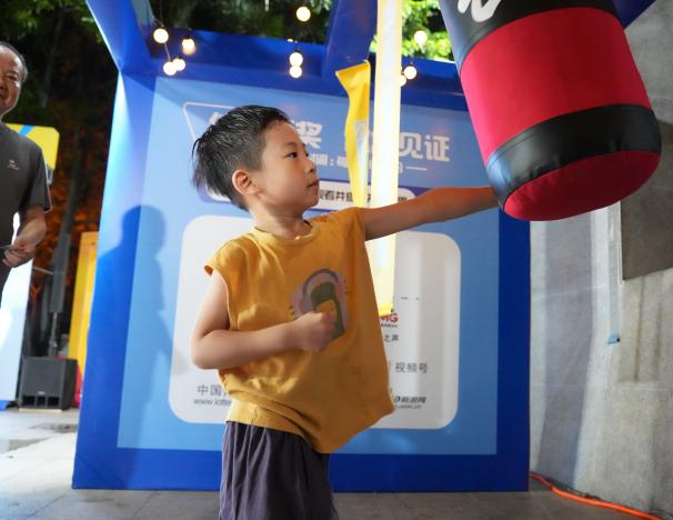 活动现场,最热闹的当属游戏互动区。“投出风采”“脑动动出彩”“拳释新出彩”等多个运动项目,吸引了不同年龄段的市民参与。小朋友们在家长陪同下尝试“脑动动出彩”游戏,比拼精准度,增加亲子间的默契;“投出风采”不止吸引了小朋友参加,还有不少中老年人也来展现身手。现场欢声笑语不断,瞬间没有了年龄的束缚,满满青春活力的氛围。