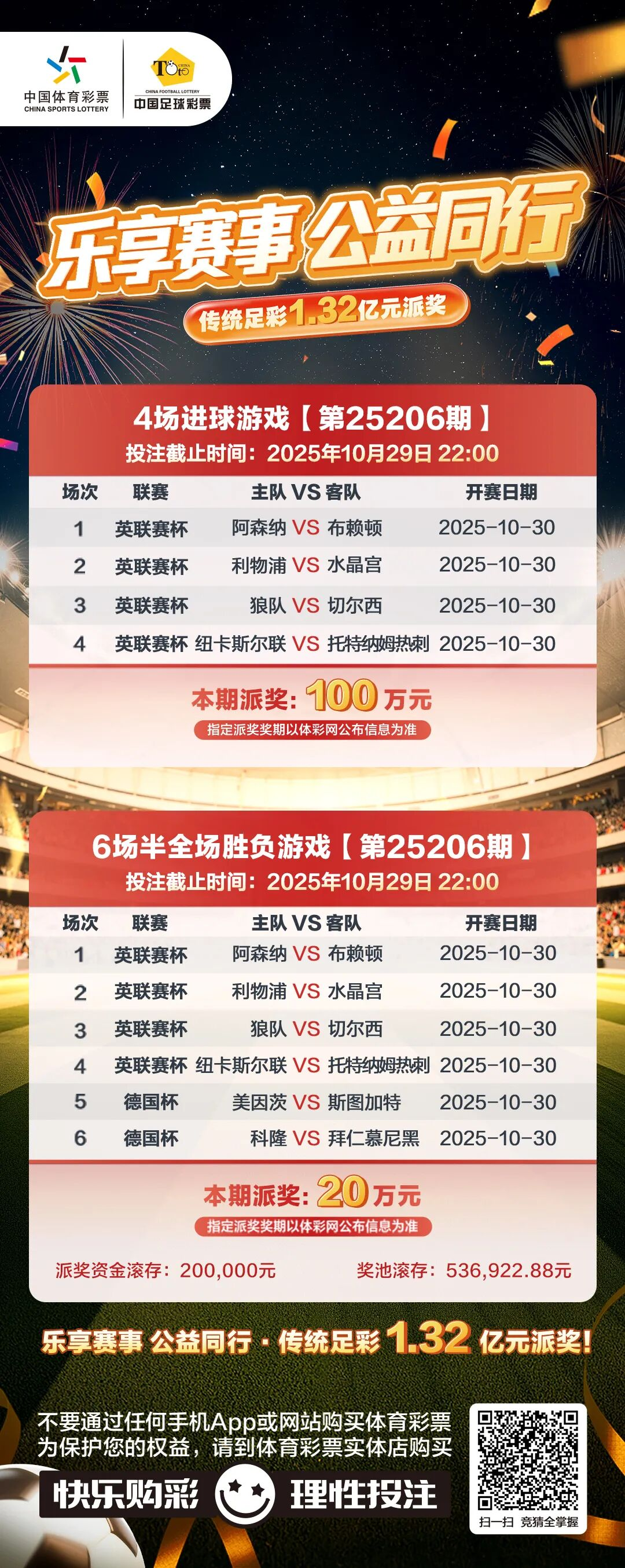 传统足彩派奖活动火热进行中!6场半全场胜负游戏滚存超70万元!