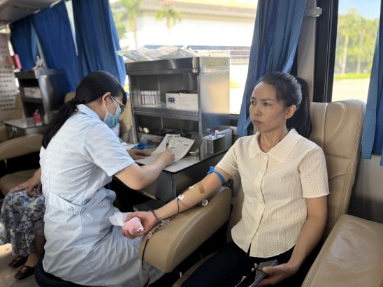 在剑英体育馆广场的献血车上,梅州市体彩中心党员、干部职工充分发挥模范带头作用,实体店代销者代表们踊跃参与,有序完成登记、验血与采血流程。