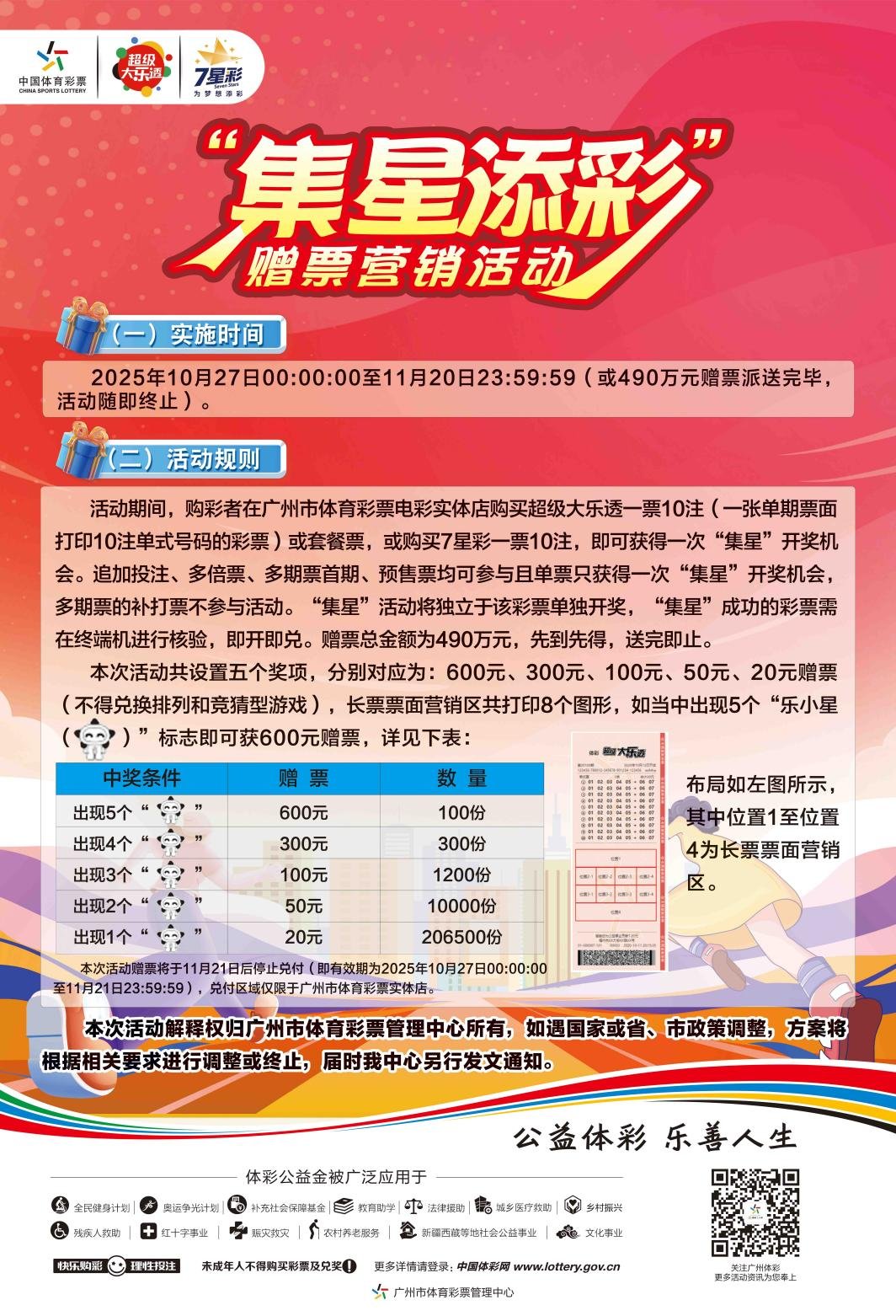 活动规则与之前基本一致。值得一提的是,为了保障购彩者权益,广州体彩暖心地把兑付截止时间设置在11月21日的23:59:59,也就是说,购彩者在活动结束后的24小时内,还可以兑付赠票哦~