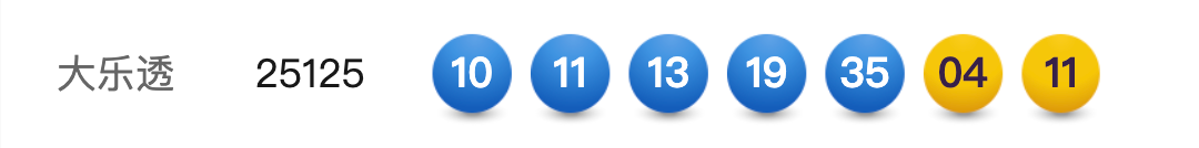 11月3日,超级大乐透第25125期开奖。前区开出号码10、11、13、19、35;后区开出号码04、11。本期全国销售3.33亿元,为国家筹集彩票公益金1.20亿元。其中,广东深圳中得1注基本投注一等奖,出自4402039374体彩实体店。