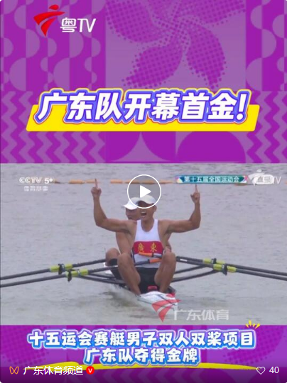 广东体彩赛艇队夺得十五运会开幕后广东代表团首金!