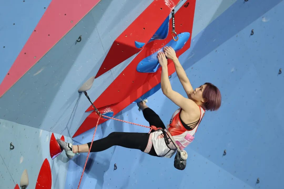 图二:十五运会攀岩女子难度赛决赛中,广东队选手张悦彤正在比赛