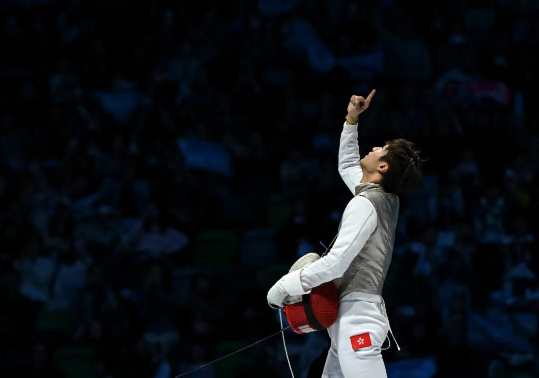 11月19日,香港队选手蔡俊彦在比赛后庆祝夺冠。