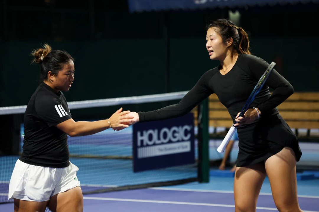 中国台北球员梁恩硕与中国香港球员张玮桓是一对黄金组合,两人此前拿下了WTA125长沙站的冠军,在本届广网她们获得了双打亚军。比赛间隙,两人来到南沙区第三幼儿园海语熙岸园区,与这里的孩子们一起打网球、玩游戏。