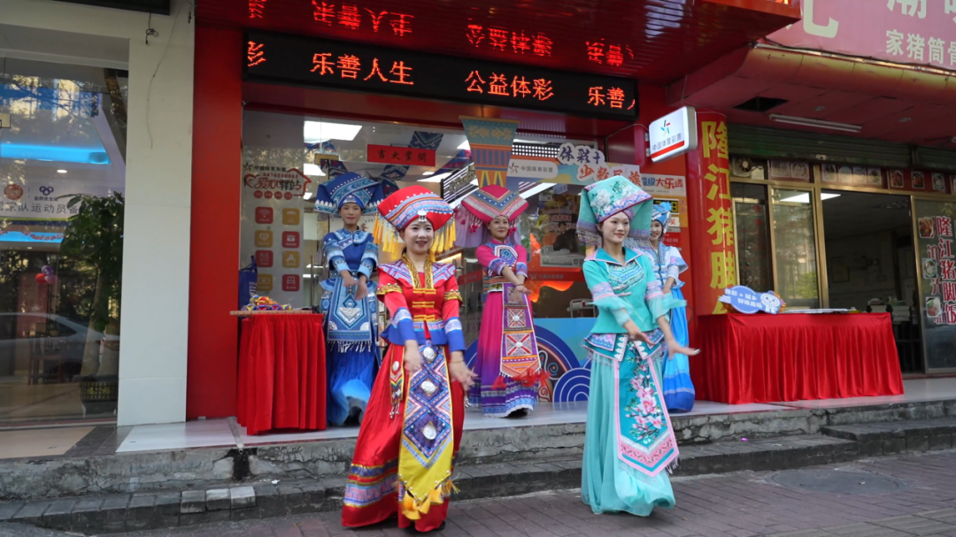 在弘福少数民族特色体彩店门前,别开生面的快闪活动接连上演。