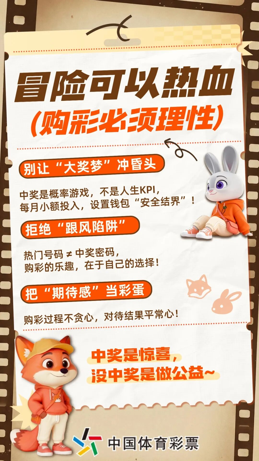 再次温馨提醒:小程序仅提供购彩辅助服务,线下体彩实体店为唯一合法购彩渠道。请大家理性购彩,在享受乐趣的同时,牢记购彩金额不应超过个人经济能力的合理范围哦~