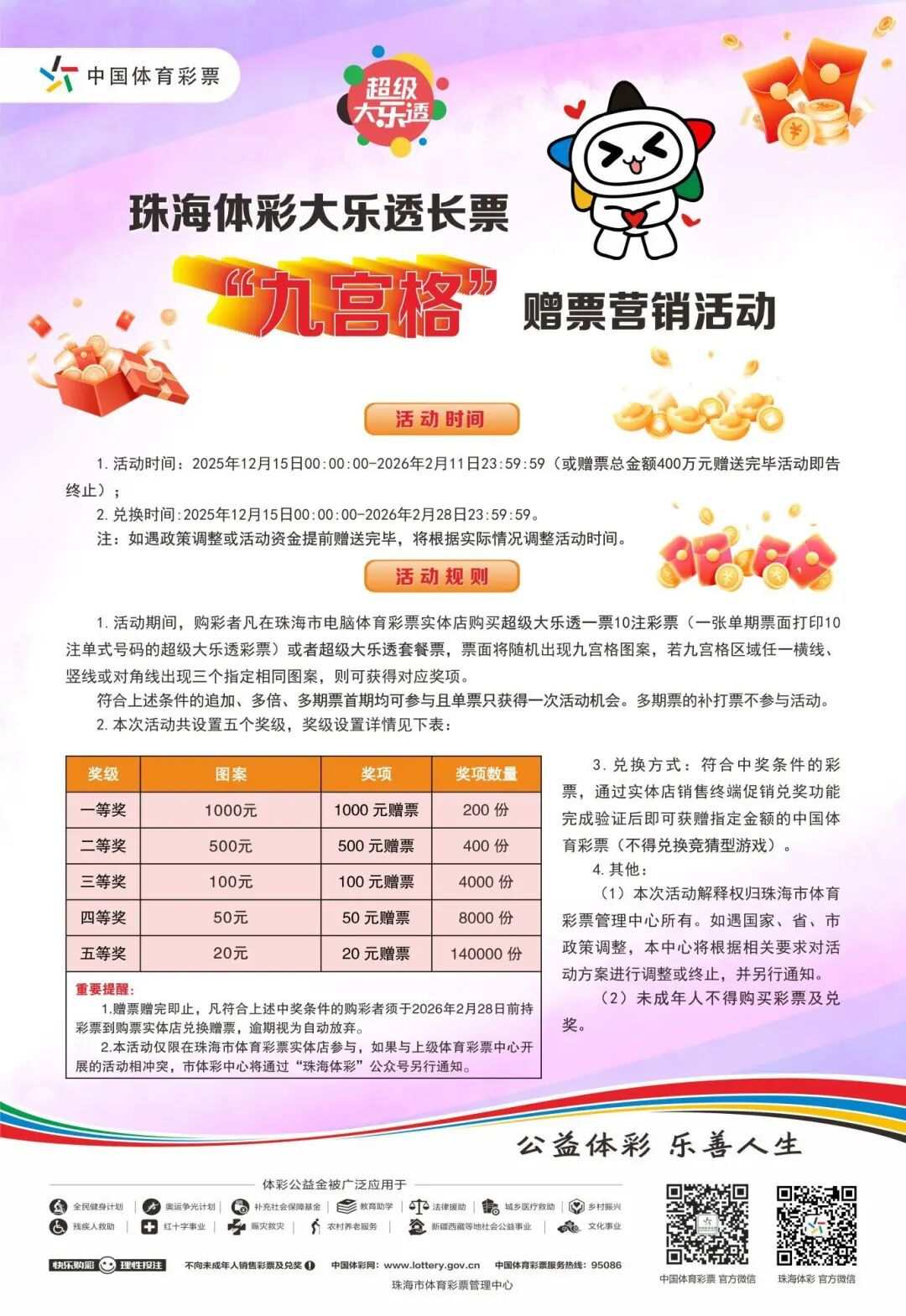 把好运连起来!珠海体彩“九宫格”400万营销活动火热开展中!