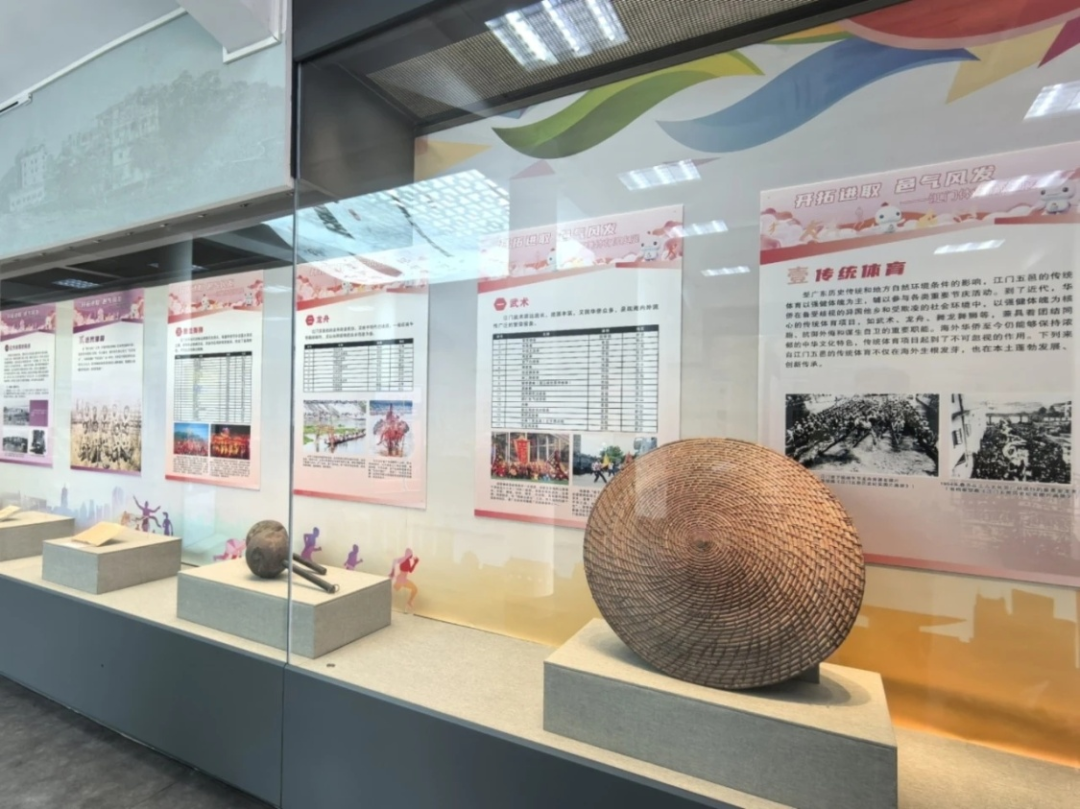 体育科普和体育历史展示区堪称“侨乡体育时光机”,民国时期的比赛奖杯、记载家乡体育情况的侨刊、2008年北京奥运会奖牌等珍贵展品整齐陈列,蔡李佛武术、台山排球等传统体育项目通过图文展板生动呈现。志愿者现场讲解击剑、曲棍球等器械的使用方法,现场观众围在一旁认真聆听,不时举手提问,在了解侨乡体育事业发展历史过程中感受体育魅力。