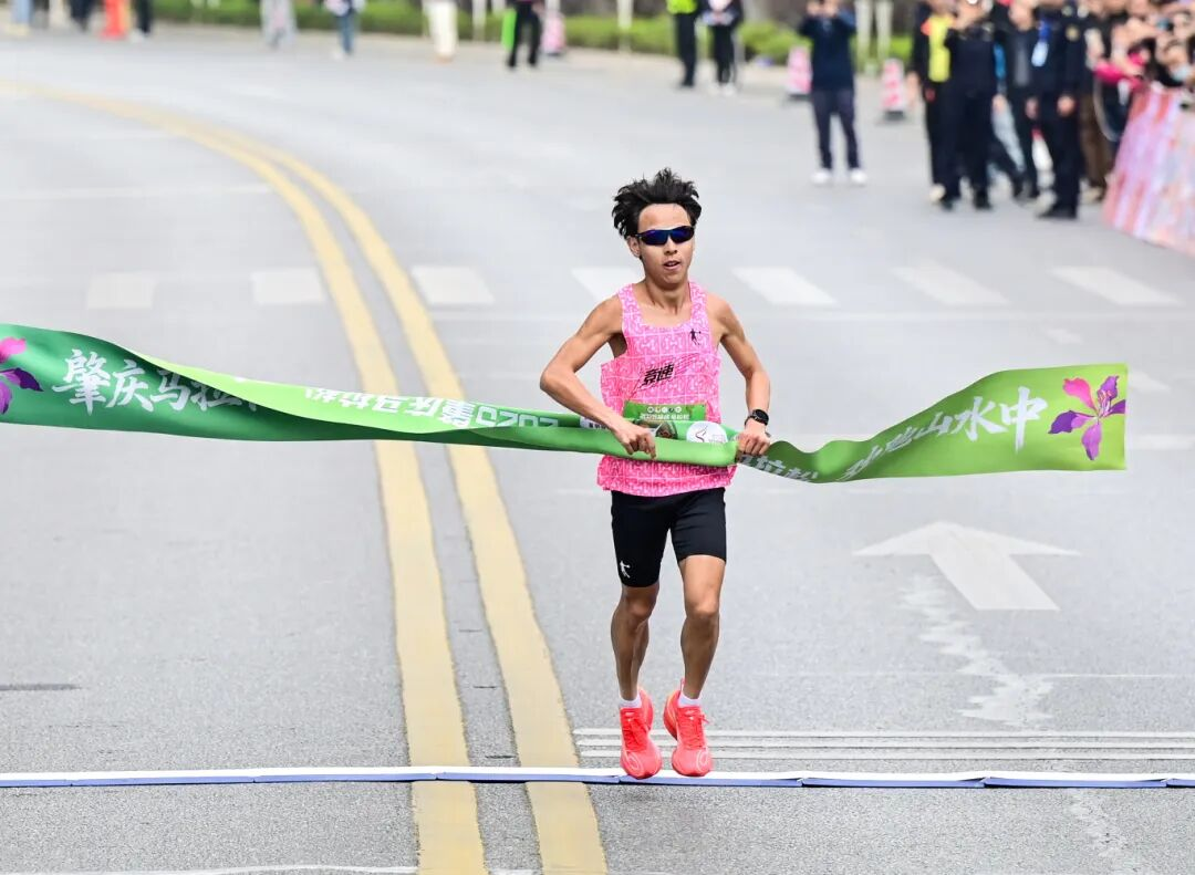 比赛至1小时9分,半马终点羚山涌广场迎来首位冲线选手——来自山东、现居深圳的王佩林。他已经连续两年拿下肇庆半程马拉松冠军,此番成功卫冕,更为肇庆赛道点赞,“新赛道跑起来很舒服,体验感很棒”。