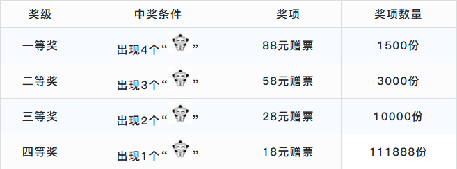 )”标志即中得本次“集星”活动一等奖。本次活动共设置四个奖级,具体详见下表: