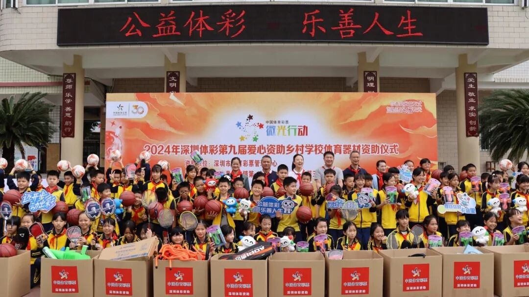 深圳体彩连续第九年深耕“微光行动”,在梅州10所乡村学校共开展3场资助活动,捐赠体育器材4559件,建成2个微型足球场;截至2024年,已累计帮扶26所乡村学校,惠及25512名学子,用实际行动履行公益职责,践行社会责任,持续深化公益公信的品牌形象。