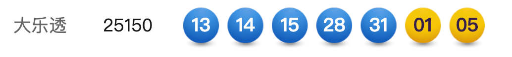 12月31日,超级大乐透第25150期开奖。前区开出号码13、14、15、28、31;后区开出号码01、05。本期全国销售3.15亿元,为国家筹集彩票公益金1.13亿元。