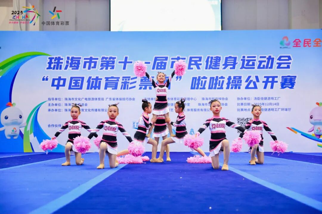近日,珠海市第十一届市民健身运动会“中国体育彩票杯”啦啦操公开赛圆满落下帷幕。本次赛事得到珠海体彩公益金的大力支持,为全市啦啦操爱好者搭建起高水平竞技与交流的舞台,并传递了“公益体彩 乐善人生”的品牌理念,助力全民健身事业发展。