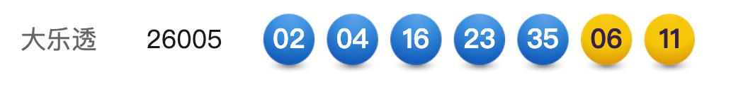 1月12日,超级大乐透第26005期开奖。前区开出号码02、04、16、23、35;后区开出号码06、11。本期全国销售3.11亿元,为国家筹集彩票公益金1.11亿元。其中,广东惠州中得1注基本投注一等奖,出自4411030810体彩实体店。