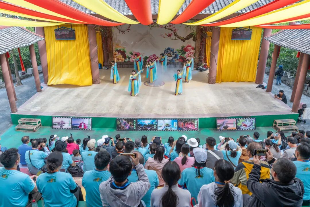 活动当天,景区旅游码头广场暖意融融、笑语盈盈,参与者身着统一文创T恤,经热身操与启动仪式后,分全程组与亲子组出发。全程组10公里路线串联镜花缘、山脊线等景致,可尽赏“水月湾”“龙凤岛”湖光与森野绿意;亲子组5公里路线侧重趣味互动,让家庭尽享湖山闲趣。此外,活动还融入客家文化元素,镜花缘内的传统歌舞、非遗手作,让乡亲们沉浸式感受“世界客都”韵味。